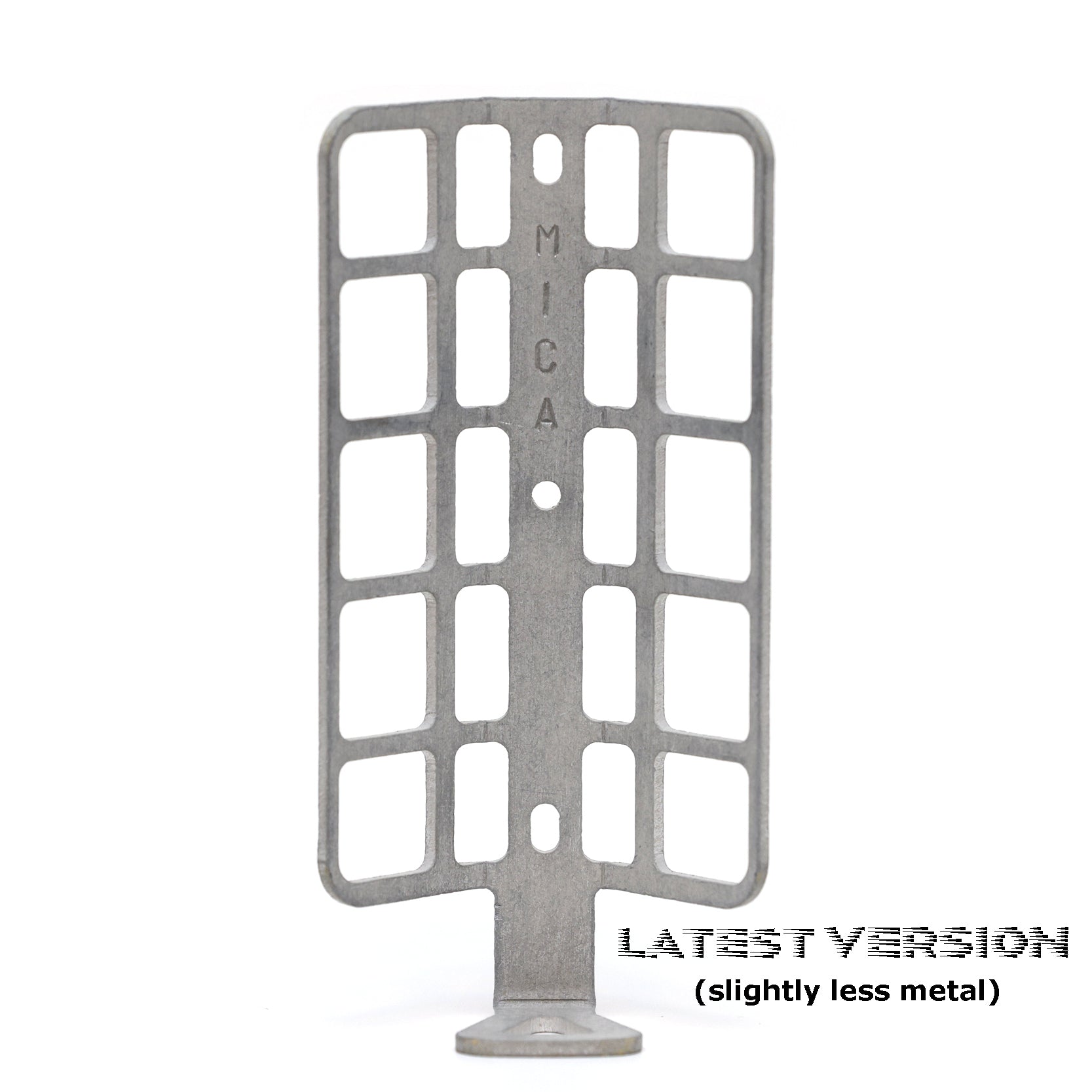 These sturdy, raw aluminum cargo cages are about as simple as can be with a fixed position and five slots for 3/4" (20mm) cargo straps. Great for carrying oversized water bottles, small bags, or maybe your camp shoes.